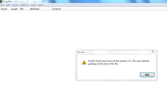 Tweakpng打开说第33个字节开始报错,010打开发现从34字节开始的文本描述是(38 39 61)89a,第一反应为像GIF,gif的头的文本描述为GIF89a,再看结尾的16进制为003B,基本确定为GIF图片,然后把头文件补齐(47494638)GIF89a。