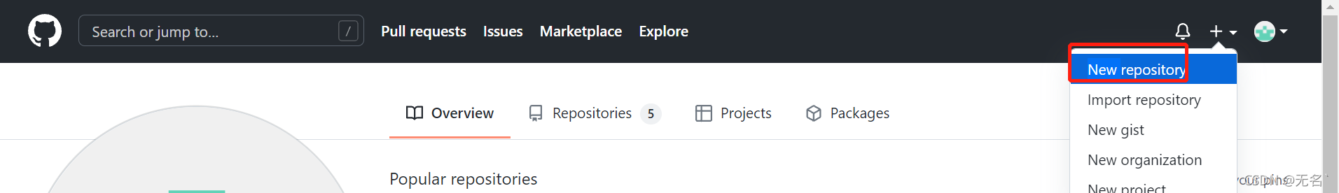 打开github,选择settings