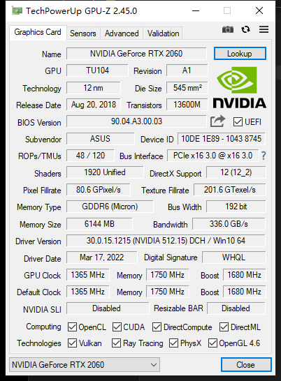这个软件应该是耳熟能详了,可以准确识别显卡的规格信息,以及实时的温度、GPU频率、显存频率等信息,比任务管理器的全。当鼠标停留在某一信息栏一段时候后,将会有相关的信息提示,可以用来初步了解显卡。