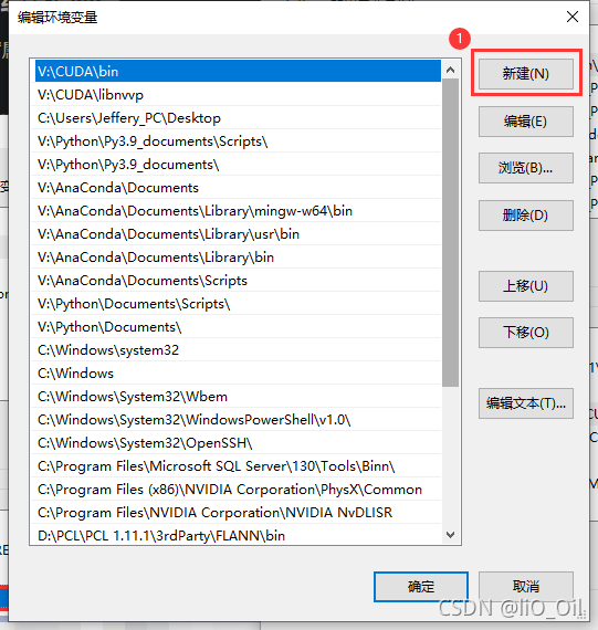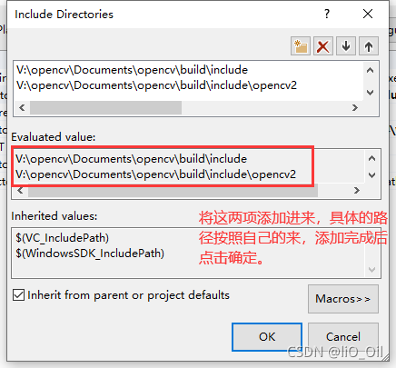 然后在新建的输入框里输入OpenCV的bin文件目录,每个人都不一样,这里需要改成自己的,我的是:V:\opencv\Documents\opencv\build\bin