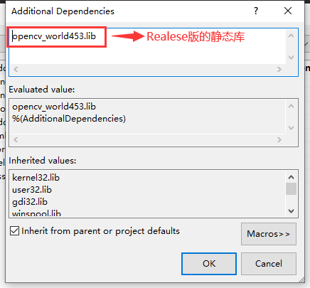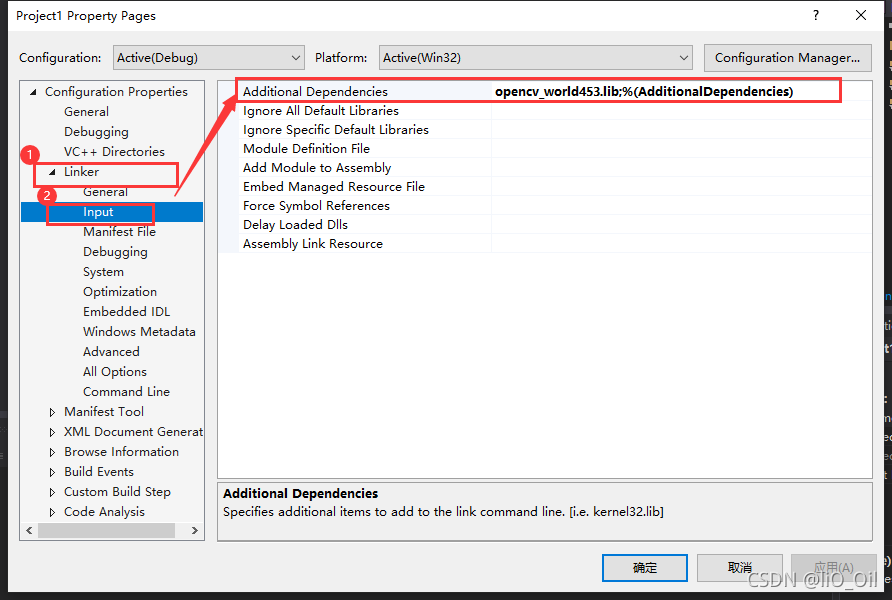 然后把甘冈添加的lib目录下的opencv_world45.lib添加进来。