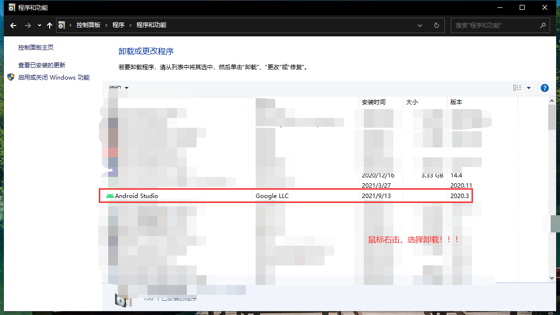 1、打开控制面板,选择“程序”,在卸载或更改程序界面找到Android_Studio。