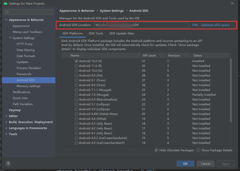可以在Android_studio软件中的Tools->SDK Manager中找到SDK、NDK的文件存储路径,将里面的SDK、NDK文件删除掉。