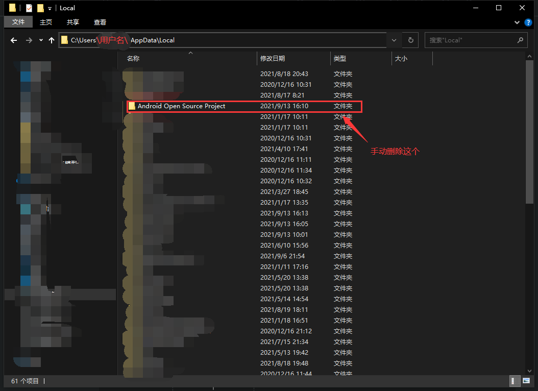 B、去C:\Users\用户名\AppData\Local中删除下图中框选的文件夹。