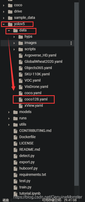 无论是哪一个,程序在运行时,能找到对应的文件就可以。(如果你选择colab训练,可以直接修改对应目录下的coco128.yaml文件,至于详细的方法,下文有介绍到,别着急)