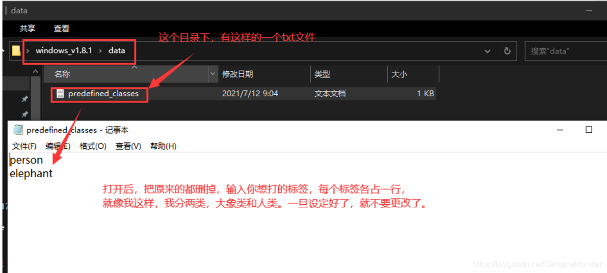 其中,classes.txt文件要保存好,别小看这个文件,这个文件疏忽了,能让你的标记全白费,所以建议各位,先标记个1-10张图片,试验一下,训练程序能否进行。程序没错误,就进行标记。有错误,再回头看看本文的流程。一定得注意,打完第1-3个标签,就得打开这个文件夹进行分类名称和序号的确定。如果要改变classes.txt文件里的标签顺序,那么就得将改变顺序之前的所有图片,重新标记,否则也会出现问题。