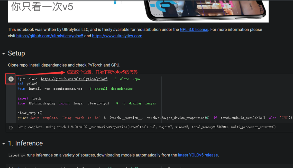 上传完成后,将会跳转界面。然后按下图操作流程进行,下载Yolov5代码。