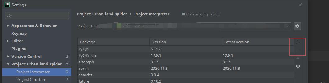 pip install numpy==1.19.3或者也可以在Pycharm的Setting里修改,用减号移除包,用加号增加所要的包。如下图1、图2所示,可进行包的增删以及包版本的选择。