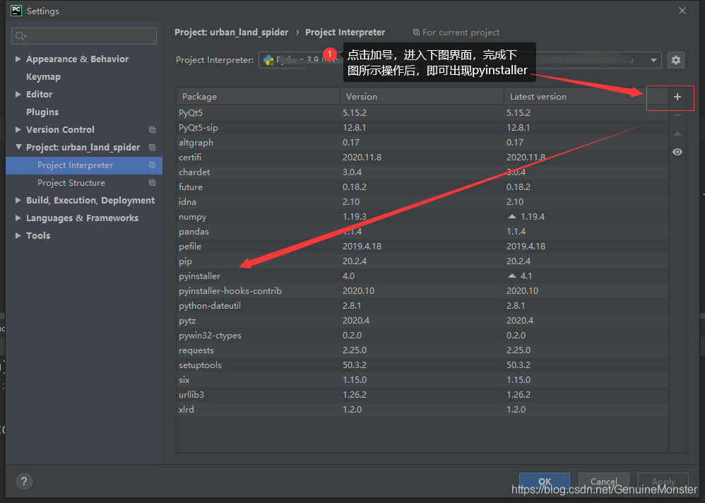 pip install pyinstaller==4.02、Setting->Project Interpreter中设置