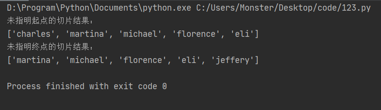 从实验结果得出:切片->未指明起点,从列表起点“起”;未指明终点,至列表终点“终”。