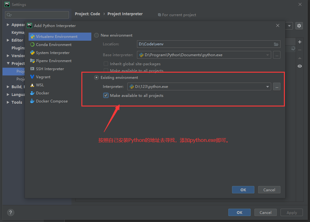 正如很多人所说,这个步骤是告诉Pycharm你的Python解释器在哪?用图说话: