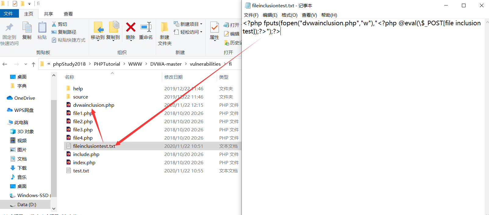 fputs函数:为php函数,功能和fwrite函数一样,表示创建一个新文件,这样上传成功以后就会在当前平台文件所在目录下面创建一个含有木马的dvwainclusion.php文件