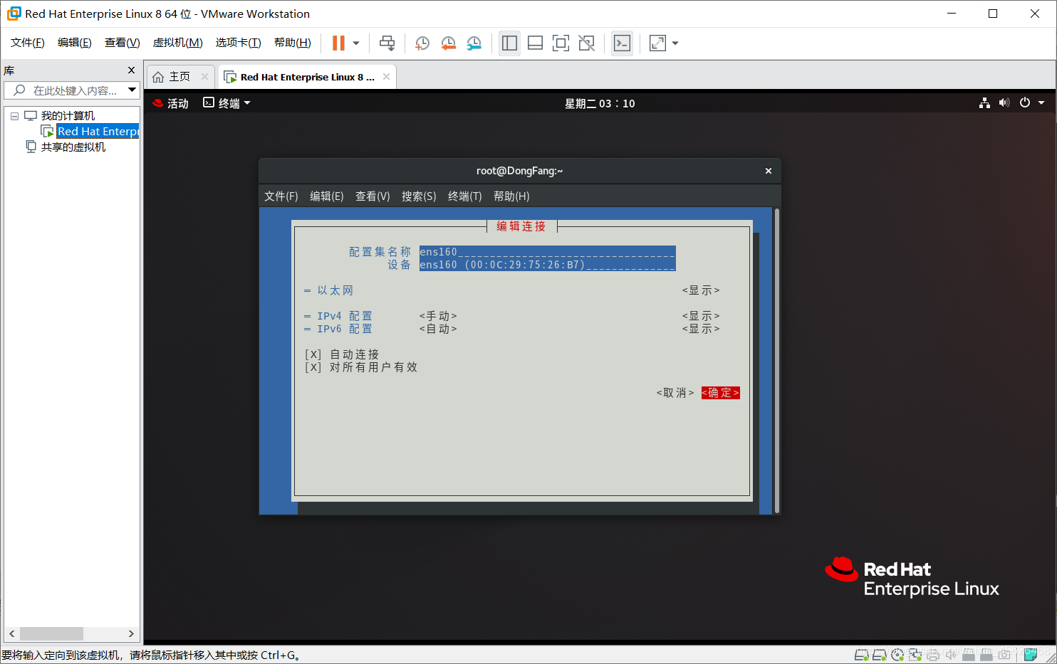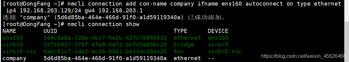 在成功创建网络会话后,可以使用nmcli命令查看创建的所有网络会话