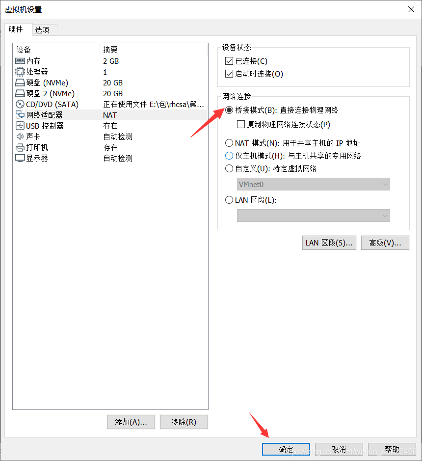 如果大家使用的是虚拟机,请把虚拟机系统的网卡切换成桥接模式,然后重启虚拟机系统即可