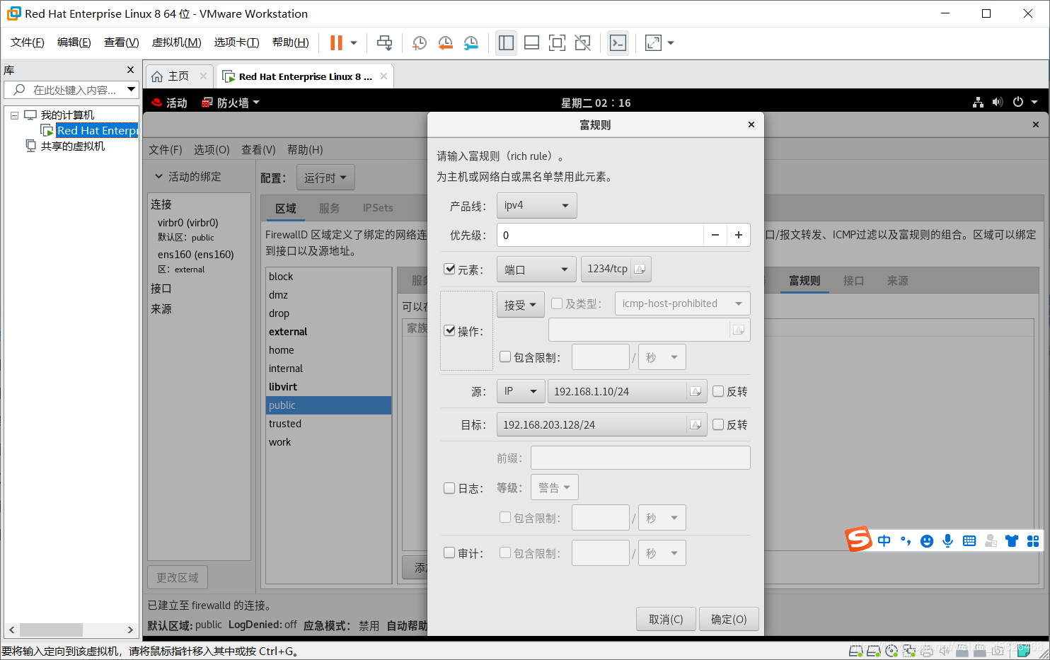 配置富规则,让192.168.1.10主机访问到本机的1234端口号