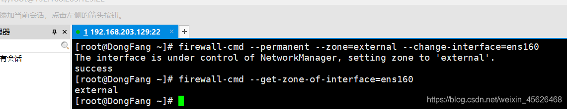 查看ens160网卡在firewalld服务中的区域