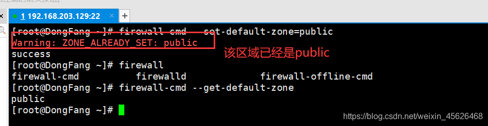 把firewalld服务的当前默认区域设置为public