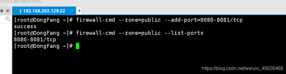 把在firewalld服务中访问8080和8081端口的流量策略设置为允许,但仅限当前生效: