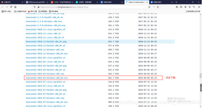 可在清华镜像站(https://mirrors.tuna.tsinghua.edu.cn/anaconda/archive/)下载,如下图: