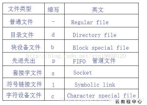 尽管在Linux系统中一切都是文件,但每个文件的类型不尽相同,因此Linux系统使用了不同的字符加以区分,常见的字符如下所示: