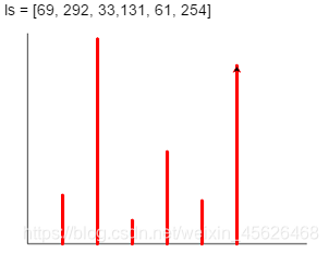 for i in range(len(ls)):t.penup()t.goto(x0 + (i+1)*50, -100)t.seth(90)t.pendowm()t.fd(1s[i])