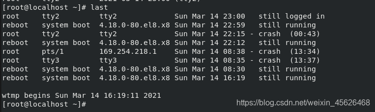 reboot命令用于重启系统(由于重启计算机会涉及硬件资源的管理权限,只能使用root管理员来重启)