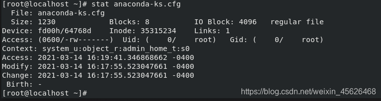 我们再次通过touch命令把修改后的文件时间设置成修改之前的时间