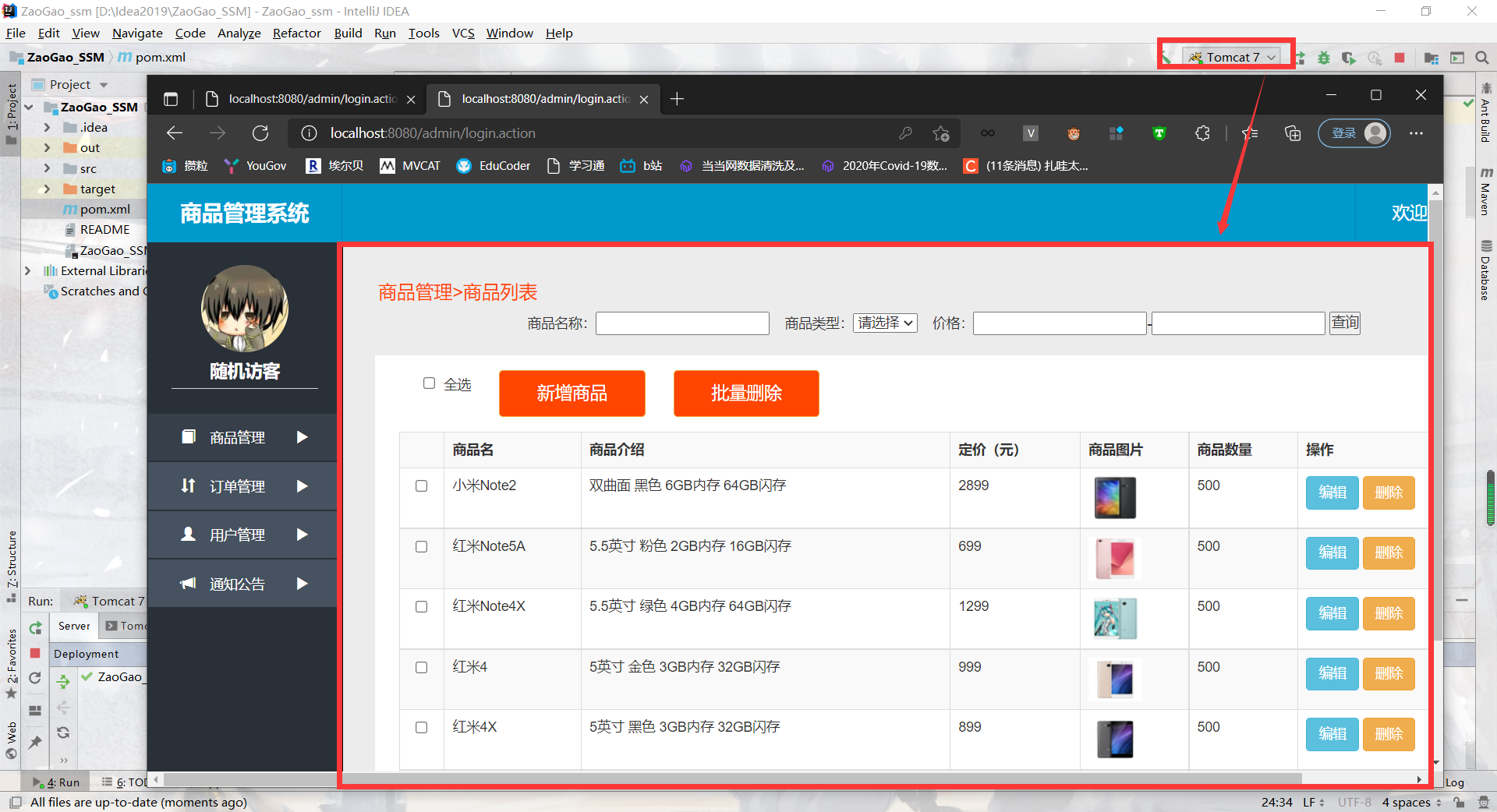 如果不是的话就改变一下tomcat的版本,将tomcat 9换成低版本。当时报错之后在浏览器中一番搜索,各种说jstl.jar包和standard包的问题,我都试了一遍还是不行,偶然间翻看评论说将tomcat 9换成低版本就行,因为我的idea本身就有两个tomcat,于是使用tomcat 7.0.108的版本试了一下发现不报错且能正常显示了。