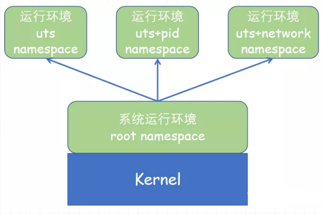「每一个namespace都基于当前内核」,无论是默认的root namespace还是用户创建的每一个namespace,都基于当前内核工作。所以可以认为namespace是内核加载后启动的一个特殊系统环境,用户进程可以在此环境中独立享用资源。更严格地说,「root namespace直接基于内核,而用户创建的namespace运行环境基于当前所在的namespace」。之所以用户创建的namespace不直接基于内核环境,是因为每一个namespace可能都会修改某些运行时内核参数。