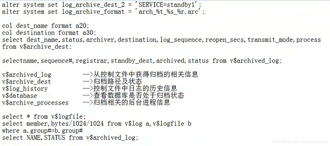 | alter system set 1og_ archive_ dest_ 2 =’SERVICE=standby1' ;alter system set 1og_ _archive_ format =’arch_ _%t_ _%s_ _%r. arc' ;