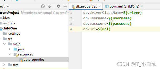 主要应用的场景:开发环境和测试环境的配置是不一致的,为了打包方便,一般我们会将配置文件的写在一个properties文件中,如下: