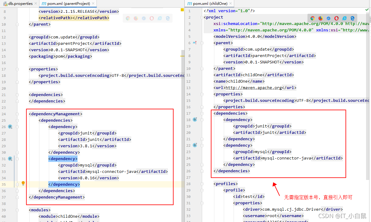 当前标签和dependencyManagement的作用是一致,在父模块当中定义好版本号,在子模块当中直接引用即可