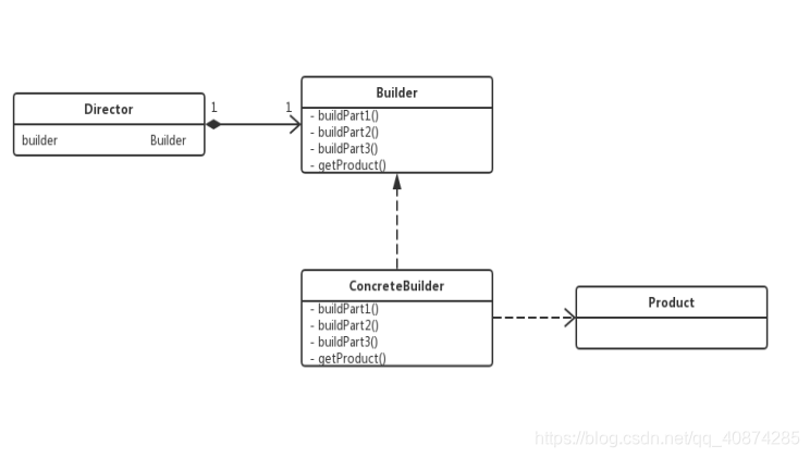ConcreteBuilder:实现Builder接口,针对 不同的商业逻辑,具体化复杂对象的各部分的 创建。 在建造过程完成后,提供产品的实例;