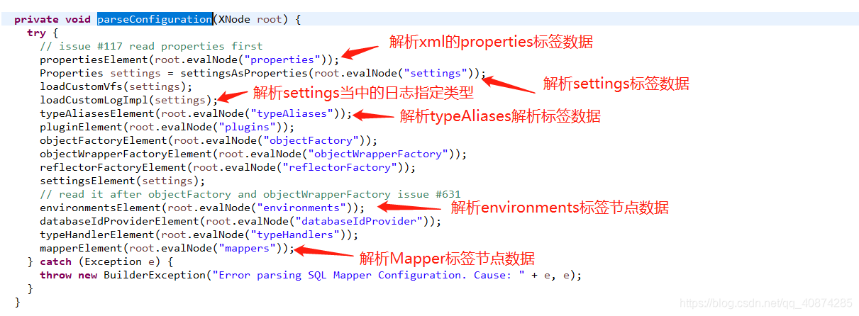我们就跟着解析流程讲解一下(在创建XMLConfigBuiler对象的时候会把Configuration对象创建出来):