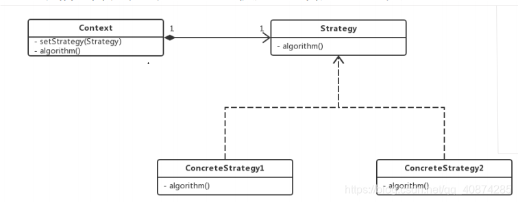 Context:算法调用者,使用setStrategy方法灵活的选择策略(strategy);