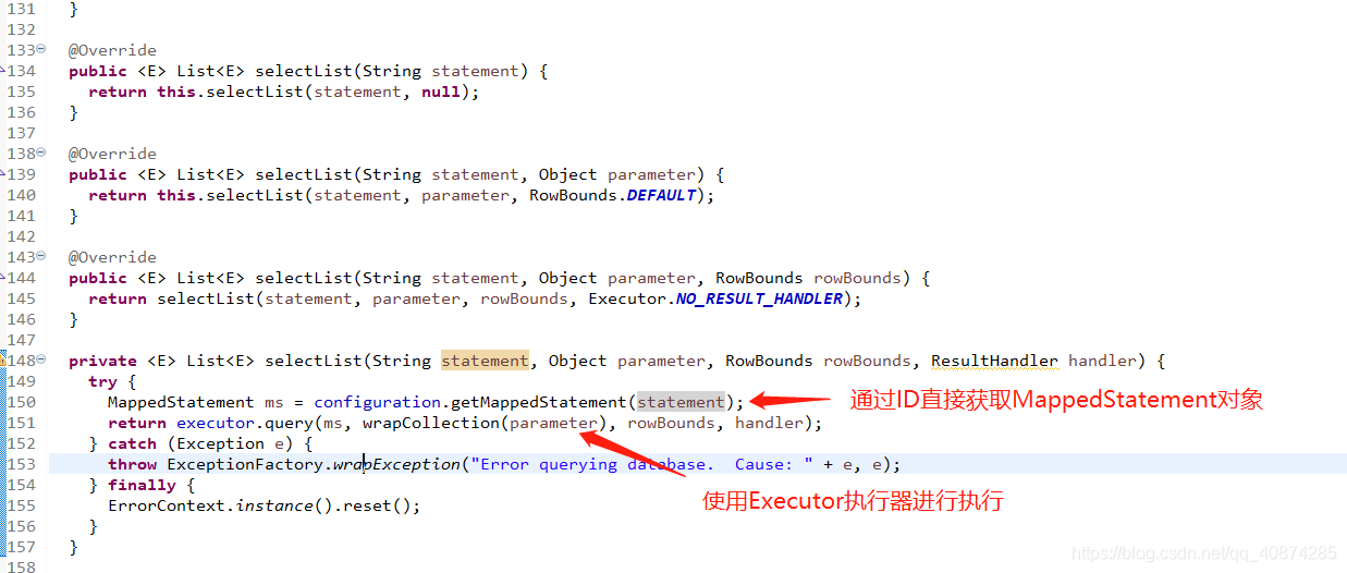 默认的方法为SimpleExecutor(在Configuration参数中有),之前看到是执行了Executor中的query方法,这里讲一下: