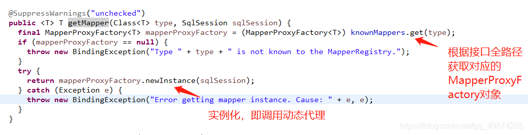 mapper接口动态代理工厂类的注册中心。在MyBatis中,通过mapperProxy实现 InvocationHandler接口,MapperProxyFactory用于生成动态代理的实例对象;
