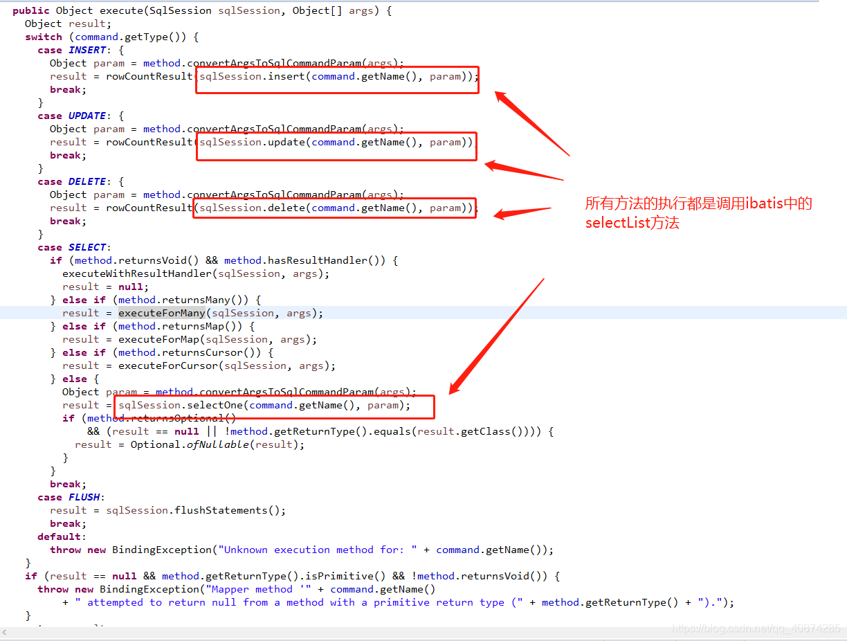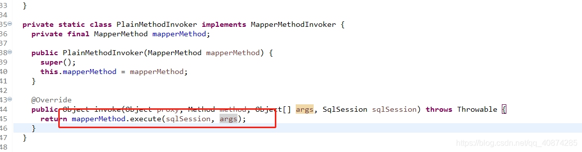 又是在invoke中执行的是invoke方法,所以在PlainMethodInvoker这个对象,执行的是mapperMethod.execute,