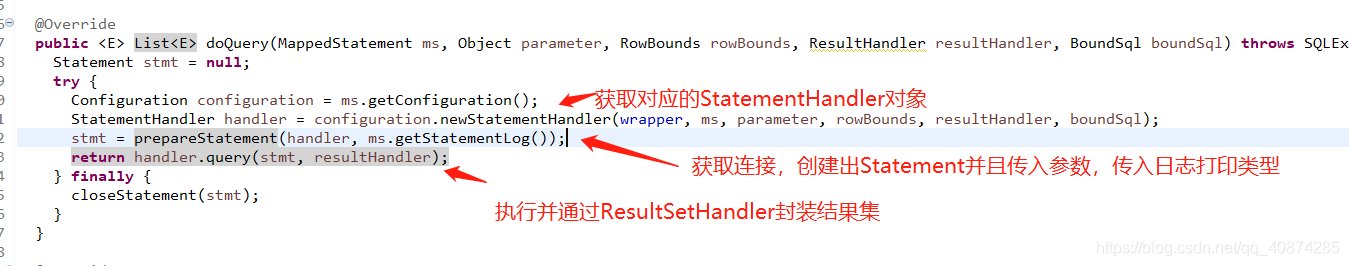 在获取到对应的Statement对象之后就是执行Statement并封装结果集