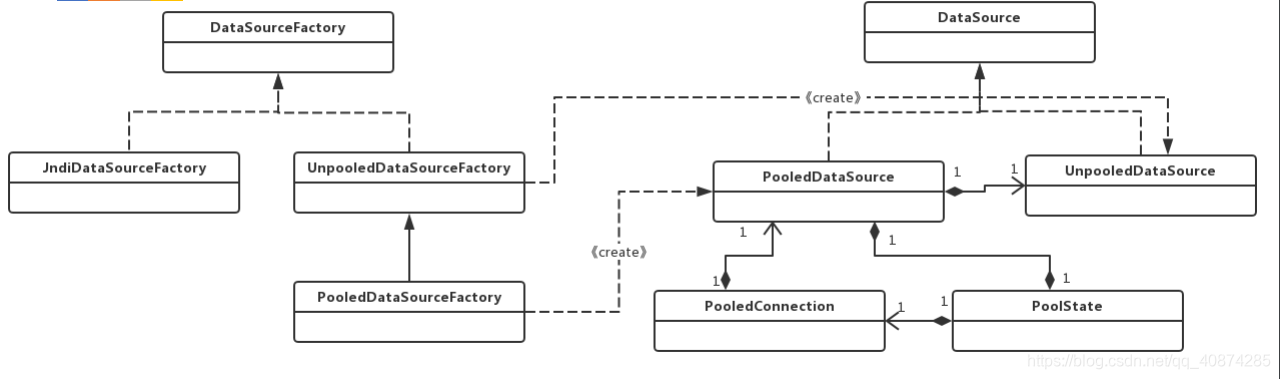 PooledDataSourceFactory:生产PooledDataSource数据源工厂,提供了一个线程安全的数据源连接池。