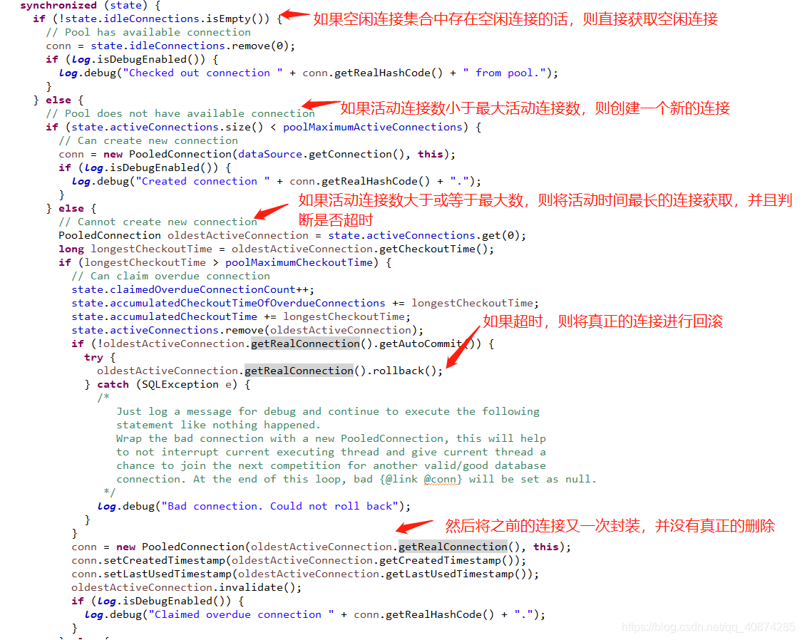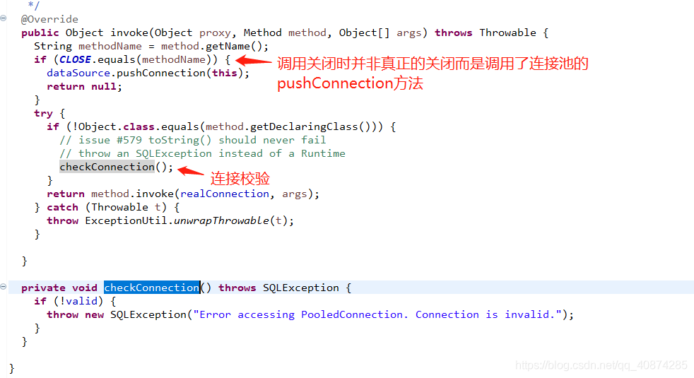 在获取PooledConnection对象后,获取的连接是代理的连接