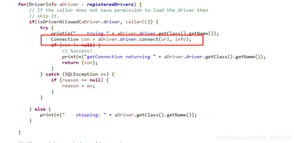 因为在Class.forName("")加载的时候会去加载驱动类的静态代码块,将其驱动放到registeredDrivers集合中,这个是个CopyOnWriteArrayList读写分离集合