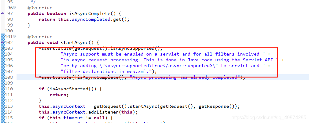 进入到源码里面可以看到,报错的地方是在StandardServletAsyncWebRequest.java:103