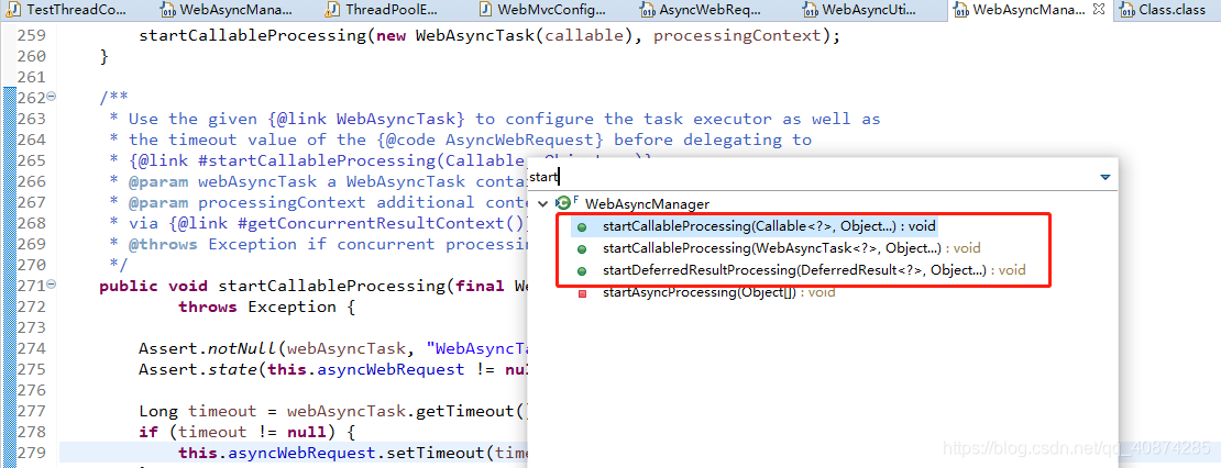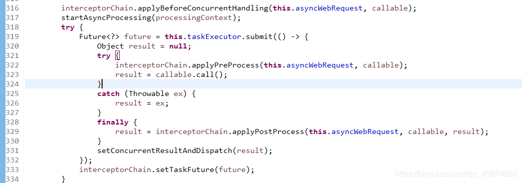 而且异步执行时,SpringMVC会先调用自己的前置处理器,在源码的WebAsyncManager.java类中: