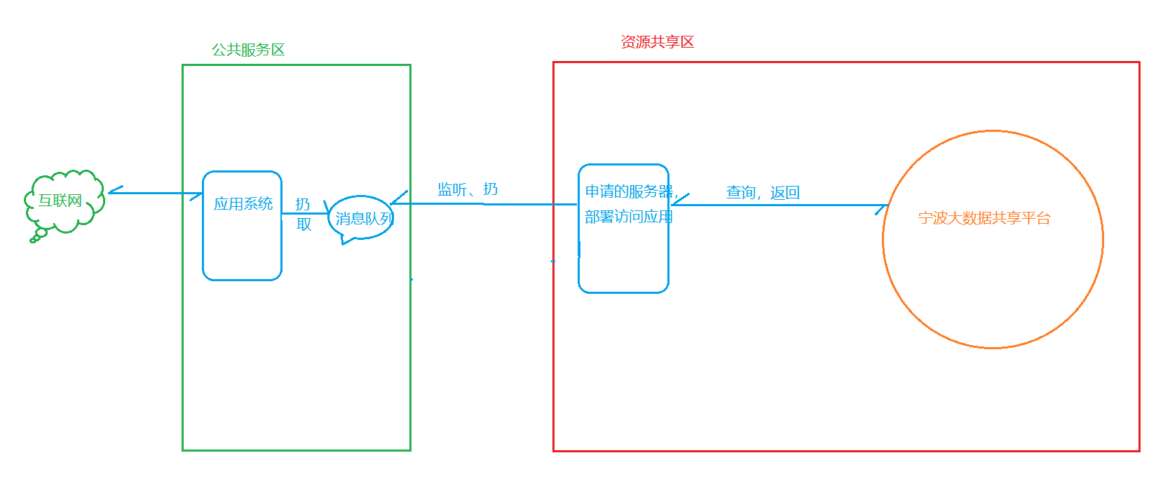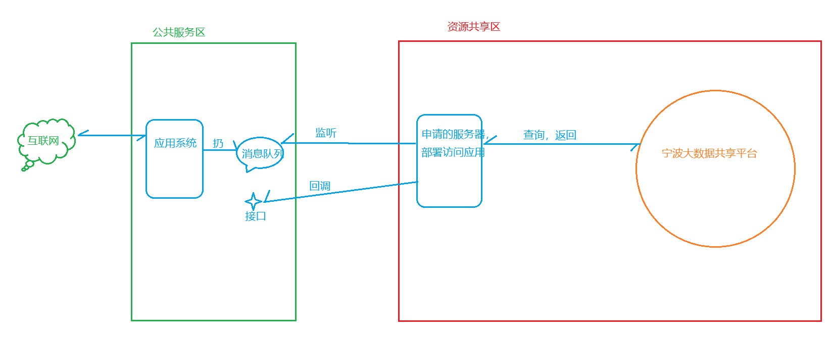 我有一项目,要能互联网访问,又要访问“宁波大数据共享平台”的接口,“宁波大数据共享平台”在资源共享区,那怎么实现?