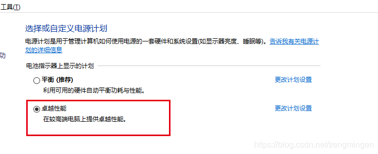 5.选择“卓越性能”,不用理会该模式的描述。选就是了。