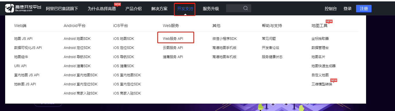 访问高德开发者平台:https://lbs.amap.com/