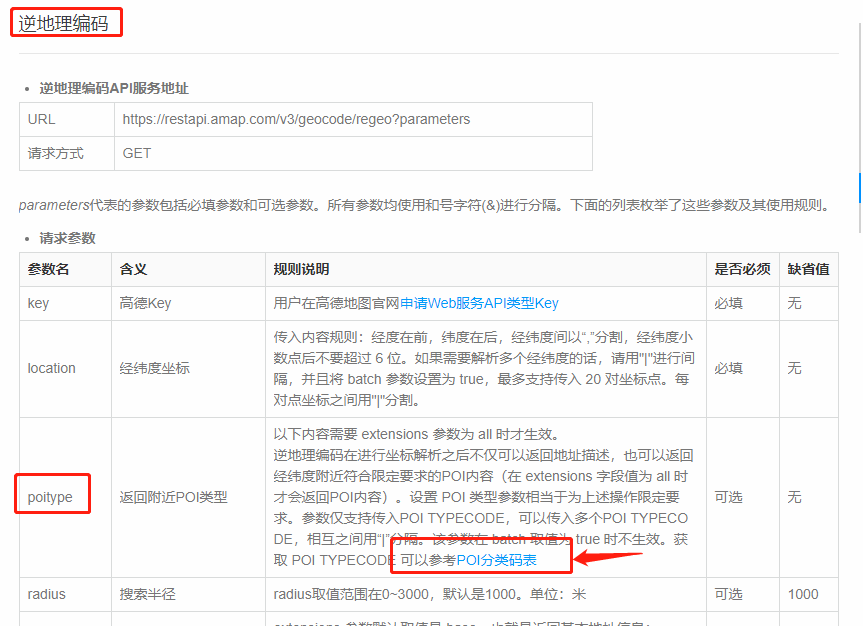 在高德的地理/逆地理编码页面,逆地理编码节点,有高德的poitype表格下载