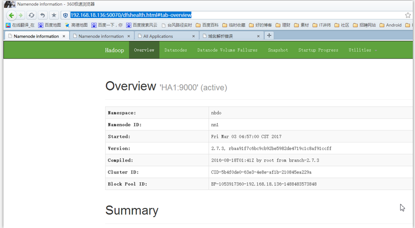 | HA10 | JDK,zookeeper,hadoop | JournalNode、QuorumPeerMain,zkfc状态值,yarn的ha状态值 |