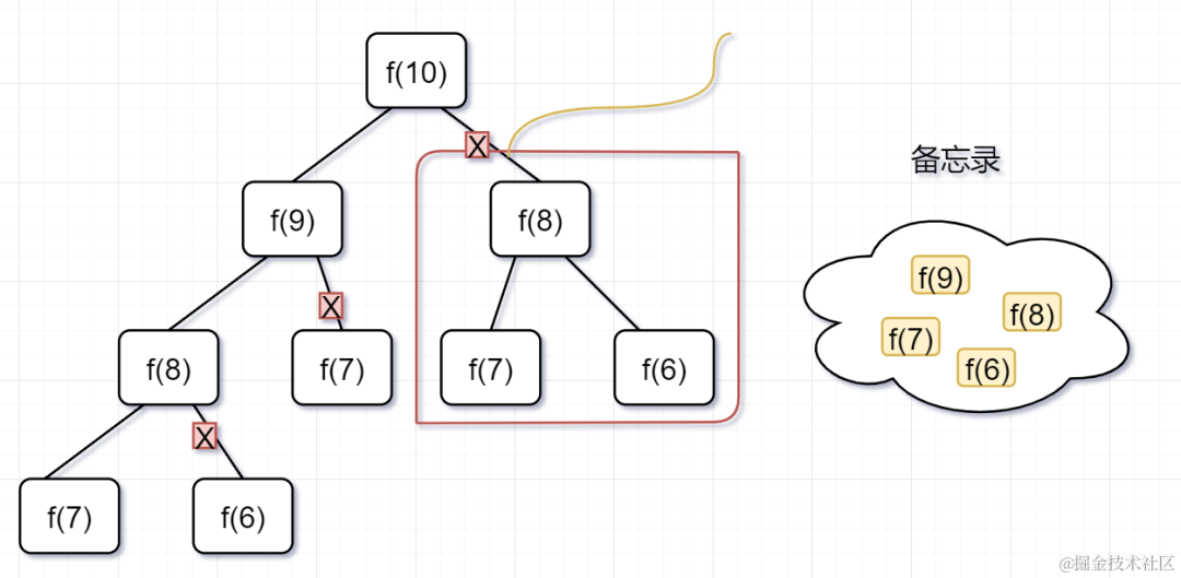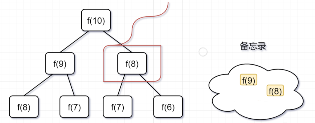 假设f(10)求解加上「备忘录」,我们再来画一下递归树: